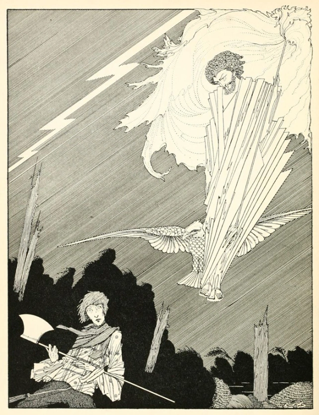 She looked like a woman, though she was a child’s size. She called in a strange, squawking tongue and a flock of birds of many kinds appeared at the cave face. They swooped and pecked me and I ran from the cave.