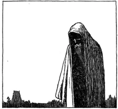 The cutting away of the mountain had left a network of caves exposed to the elements. I crawled into one of them, and found a nest with large white eggs in it. I was about to fall upon them and suck them out when a small figure struck me in the knee and I fell.