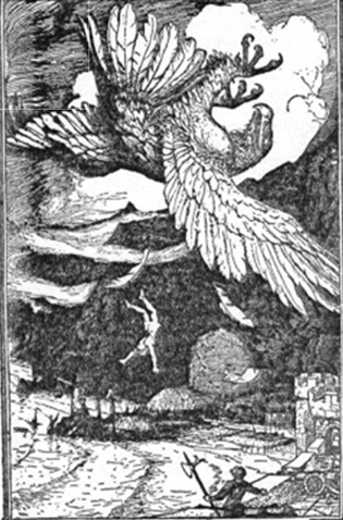 Among the mountains here can be found the enormous corpse of a roc chick, its smell is ripe and strong but even the vultures stay away. As everyone knows, rocs lay their eggs in the air and their chicks must learn to fly before they hit the ground. This one didn’t.
