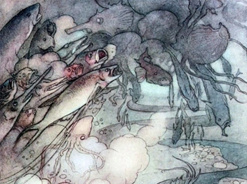 Southwest of the borders of Thring there lies a broad lake where cormorants nest in the shallows. Further out into the water, there are schools of enormous fish with the ability to swim through the air as easily as the water. Though they possess this remarkable power, they seem uninterested in using it, and will only fly up out of the lake if they are threatened by an attack from below. Because of this, the flying fish were known as the ‘fat fish’ until six months ago when their secret was discovered by the huntsman Lorenzo DiMarr.