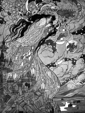 The talisman is known as Tiamat’s Nurse. A woman who wears it during her pregnancy will give birth to a dragonblooded child (also mentioned in 15.18). First-generation dragonblooded children are magical prodigies, and are inclined towards evil. Tiamat’s Nurse, locked in its chest beneath the inn, sends intense dreams to the pregnant women of Hyfalls. Some of these women have been awakened while sleepwalking through the Two Adders with great urgency. The women all awaken violently, going as far to wield stray mugs or knives. Jaustina knows the talisman is behind the disturbances, but she fears casting it into the Keening Sea.