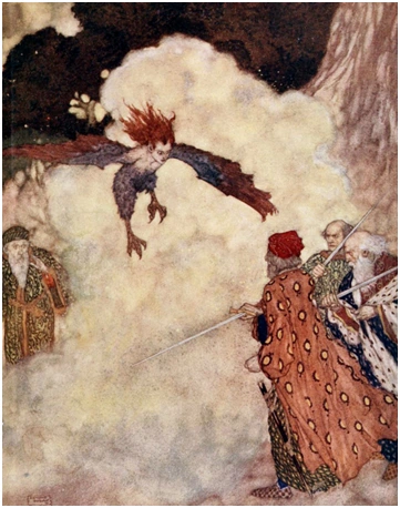 It is unsafe to linger here because a large flock of harpies broods on the cliffs below the arch. They are unlike harpies elsewhere. They are as large as common vulture but do not have women’s torsos or arms but rather the heads and voices of beautiful maidens. Despite having women’s heads, the harpies cannot speak. They babble, coo and scream inanely. A favorite tactic is swarming their prey and dragging them off the ledge.