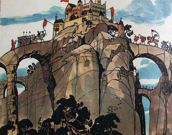 The great River of Crystal Waters nurtures the Duchy’s crops and protects its greatest bastion: Castle Tarengael whose nine domed towers were built by Duke Ulthar the Loved himself on a rocky island (16.16) so that the flowing waters would keep the Lords Sanguine at bay. Bridges connect it to the two halves of Tarengael Town: Eastbridge and Westbridge.
