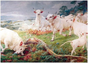 On the chalk hills that ride up from the Kingswood live humans, not in towns or villages, but only a series of dark and ancient keeps. These keeps are boarded up tightly during the day and admit no visitors. At night (and only at night for that is when the elves of the Kingswood are safely within their Holt (29.07)) the night men come out and graze their albino cattle in the surrounding fields. The unblemished white skin of these cows makes them highly prized as sacrificial victims by the priests of several cults.