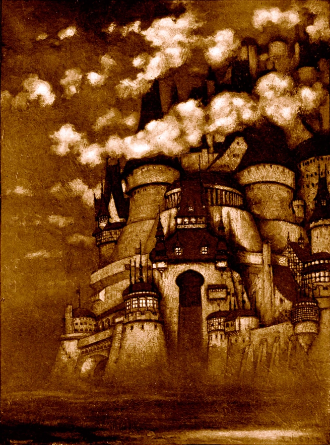 Dwarf-made pumps pull water from the canals up into the highest spires of the city, powered by the labors of heretics found guilty of worshiping forbidden gods (usually, the Green Lady of the elves and the men of Thring). In practice, the heresy charges are brought against undesirables on the flimsiest of evidence whenever a new crew of workers is needed. If a heretical prisoner should die while serving his penance, his flesh is stripped and his skeleton animated to complete his full sentence. This is one of the few examples of necromantic animation allowed by City law and temple and is strictly regulated by the Necromantic Office. A sentence of a few hundred years has become not uncommon and there is speculation that the undead now outnumber living workers.